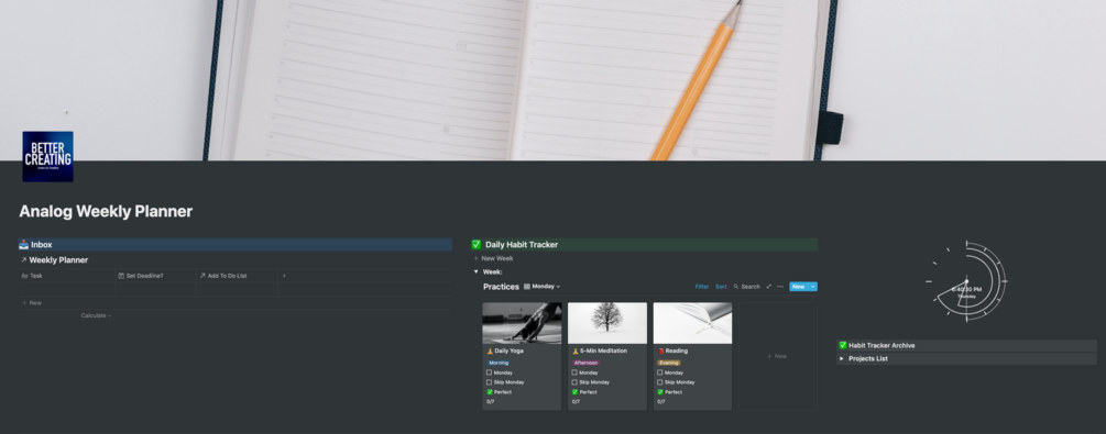This Notion Weekly Planner and Daily Habit Tracker gives you the best of both worlds: a digital productivity tool inspired by the simplicity of paper systems.