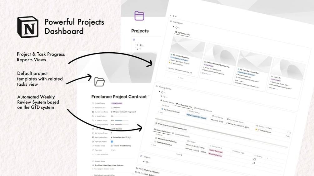 - All Notion Life OS + Creative OS Template features