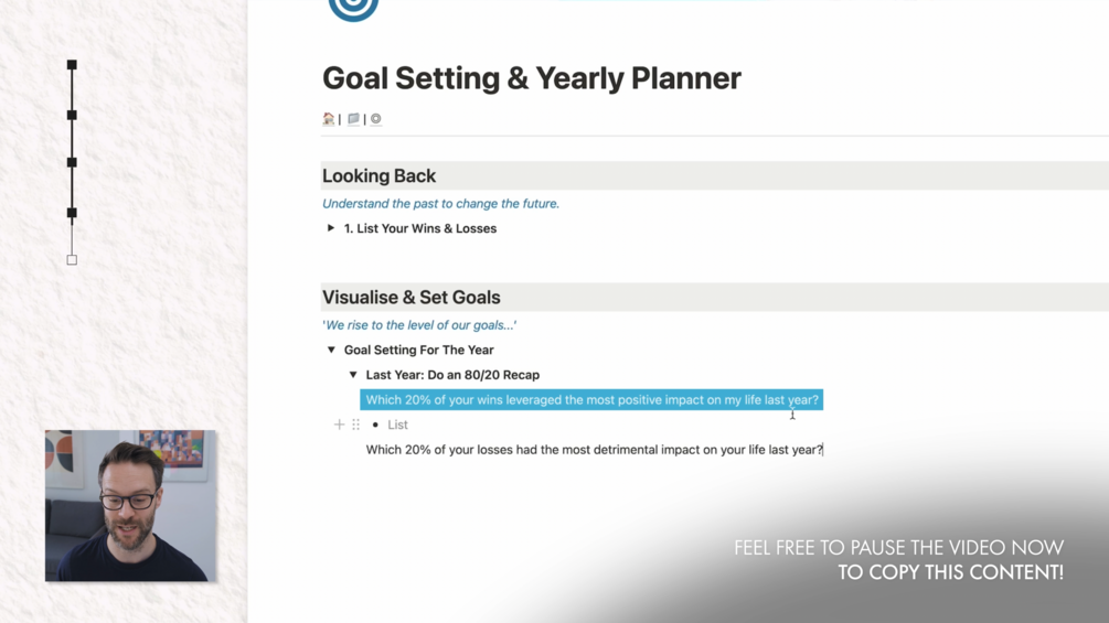 A video tutorial on how to review your year & set goals effectively all whilst building a complete goal setting system in Notion from scratch!