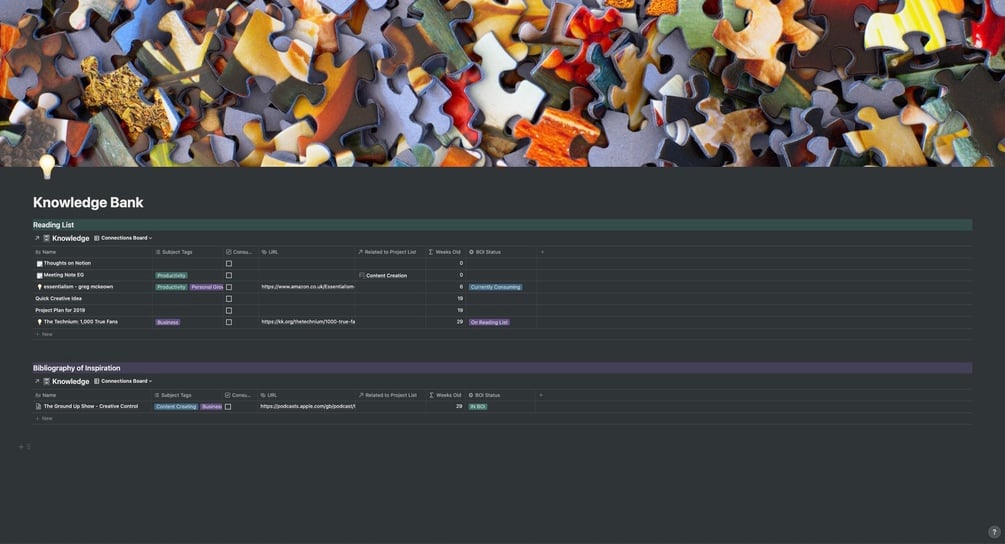 Add value to your life and work and get more done with this second brain system. It can help you visualise your goals, collect inspiration and knowledge, action your tasks and projects, and effectively maintain your system.